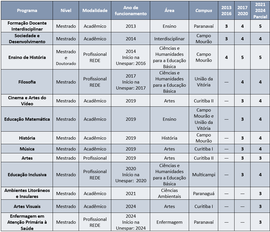 Conheça a avaliação dos Programas de Pós-Graduação da Unespar e informações sobre as quadrienais: